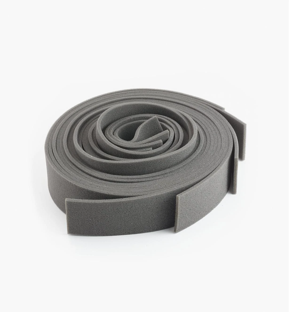 The 3″ wide, 45′ long foam is sold on its own or as part of the kit, which includes a tub of gum and heavy-duty tape. Made in the USA.