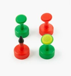 These waterers convert plastic pop bottles into handy, lightweight watering cans. Sold in a package of four, each with a different color of tip for easy identification of function and bottle contents.