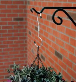 Made of stainless steel with a nickel-plated brass 360° pivot, this S-hook is weatherproof and turns smoothly even when bearing loads up to 33 lb.